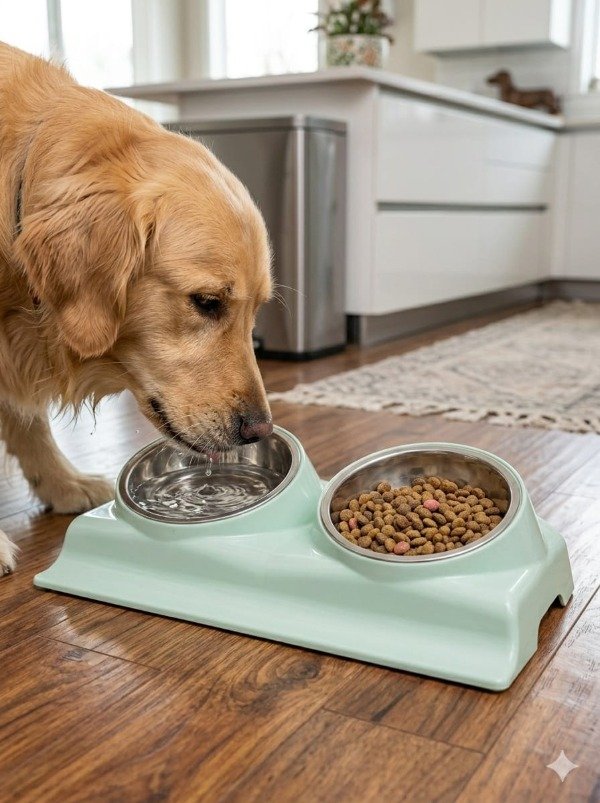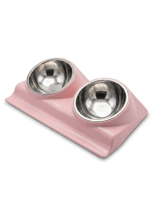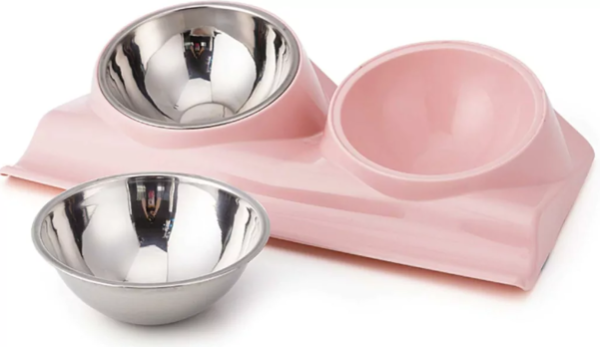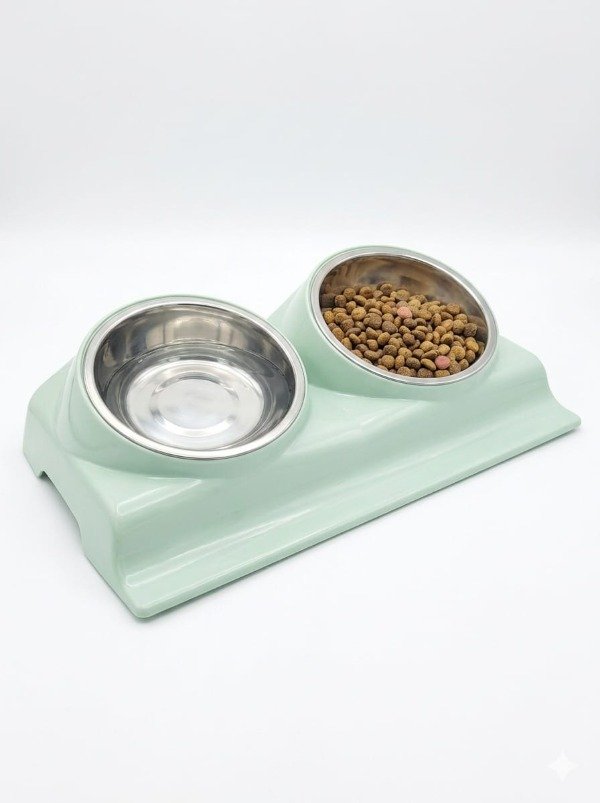 Comedero doble de plastico y acero , con cazuela desmontable.