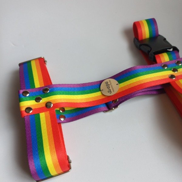 Todos nuestros productos son fabricados con cinta de poliester sublimadas de alta calidad y resistencia, todos los herrajes son de acero, los remaches tapados de ambos lados y las hebillas de resina acetal.